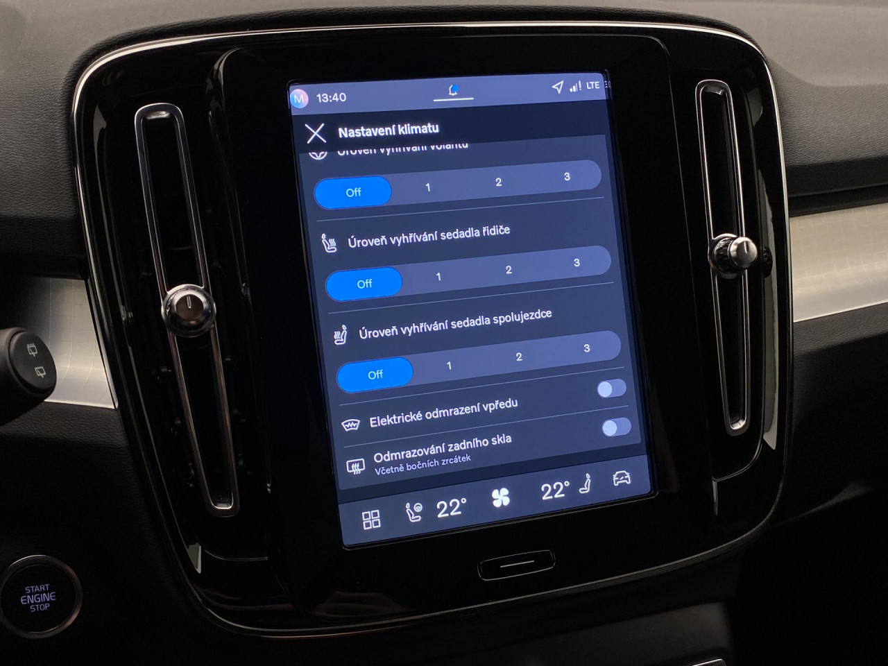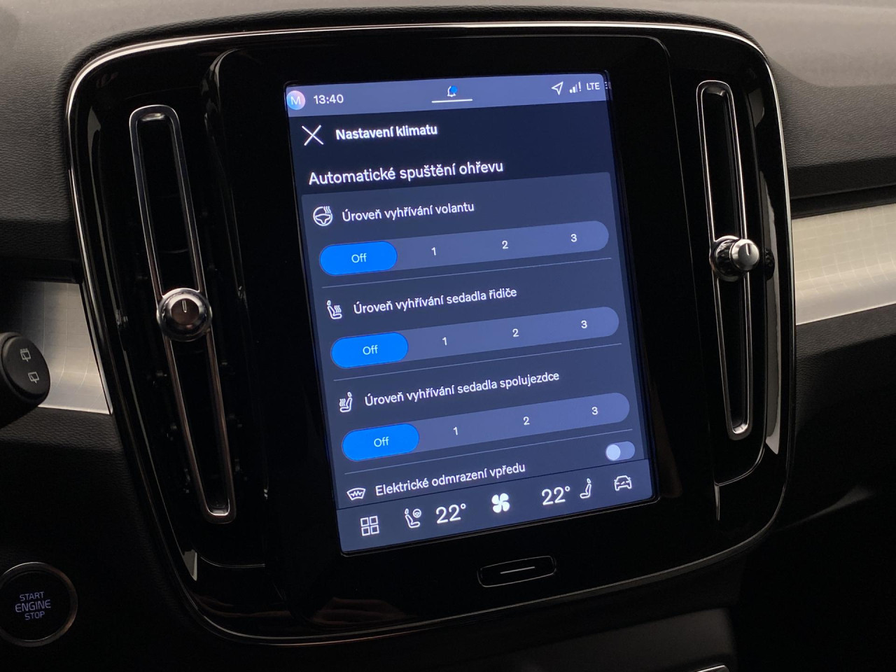 - Vyhřívané čelní sklo